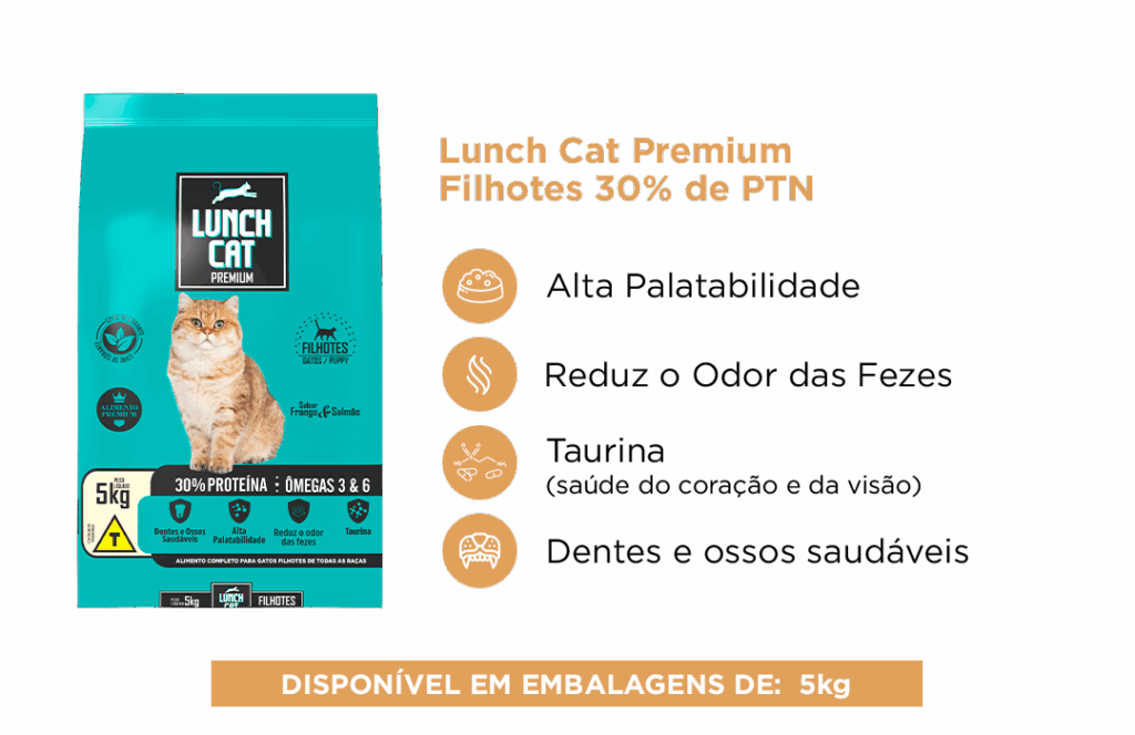 Farinha de vísceras de aves (16%), Farinha de carne e ossos bovino, milho moído integral*, quirera de arroz, gérmen de milho desengordurado*, farelo de trigo, farelo de arroz desengordurado, farinha de peixes, aroma de salmão, óleo de aves, hidrolisado de fígado suíno e de aves, óleo de peixes, cloreto de sódio (sal comum), parede celular de levedura saccharomyces cerevisiae (MOS) 0,2%, adsorvente de odor (espina corona, saponina, zeolita), adsorvente de micotoxina (aluminosilicato de sódio e cálcio 100%), sulfato de ferro, sulfato de cobre, iodato de cálcio, sulfato de manganês, sulfato de zinco, selenito de sódio, proteinato de selênio, cobre aminoácido quelato, zinco aminoácido quelato, manganês aminoácido quelato, vitamina A, vitamina D3, vitamina E, vitamina K3, vitamina B1, vitamina B2, vitamina B6, vitamina B12, ácido nicotínico, pantotenato de cálcio, ácido fólico, biotina, cloreto de colina, L-lisina, DL-metionina, Taurina, aditivo antioxidantes e conservantes (BHT, BHA, propionato de cálcio, ácido cítrico, óleo essencial de laranja).